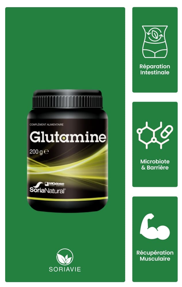 Complément naturel d’origine végétale, la Glutamine Soria Natural est idéale pour soutenir la santé intestinale, favoriser la récupération musculaire et contribuer au maintien de l’immunité au quotidien.