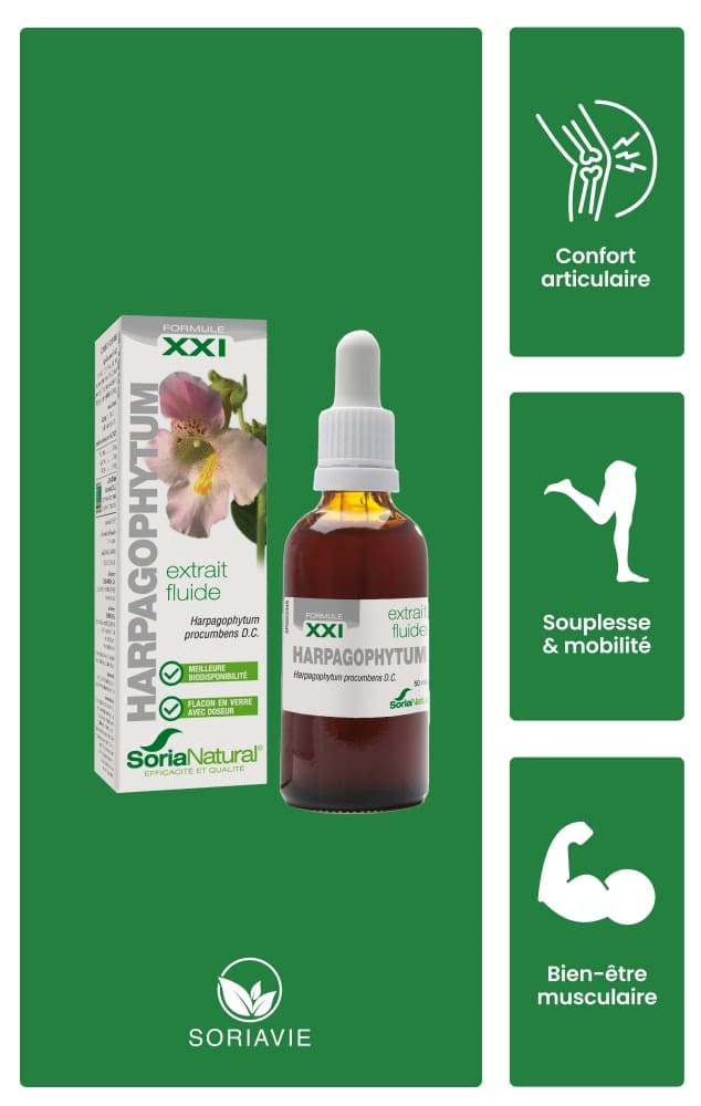 L’Harpagophytum, ou « griffe du diable », contribue au confort articulaire et aide à préserver mobilité et souplesse.