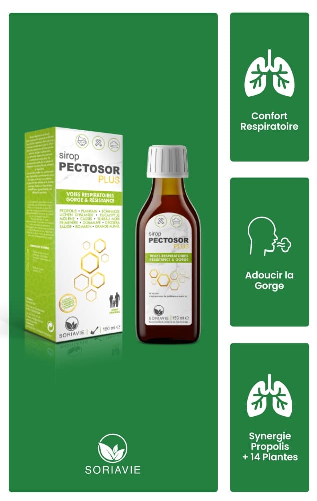 Le sirop Pectosor Plus apporte bien-être et confort respiratoire, en particulier lors du passage aux saisons froides. Goût très agréable.