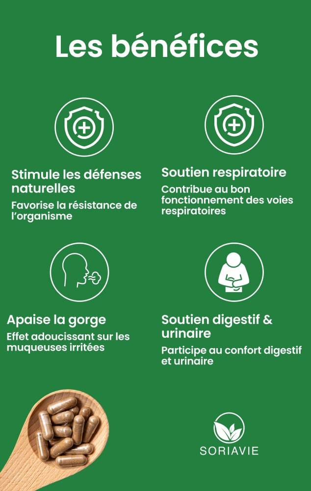 - Idéal pour accompagner l’organisme en périodes hivernales ou de fragilité.