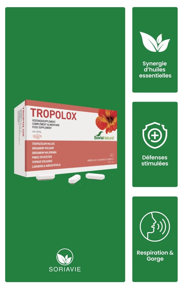 Tropolox : une synergie naturelle de capucine et d’huiles essentielles pour soutenir vos défenses et préserver votre vitalité.